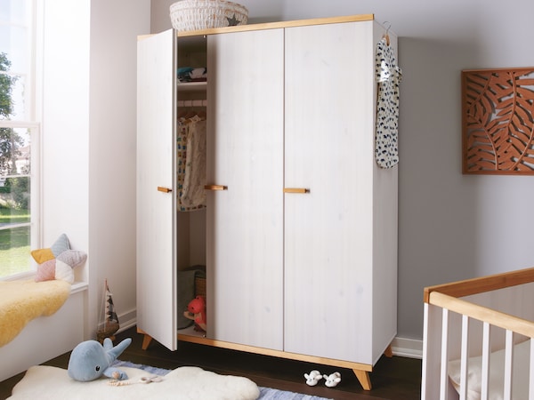 In diesen massiven Kleiderschränken finden Strampler, Lätzchen & Co. ausreichend Platz. Die hochwertige Verarbeitung und die attraktiven Massivholz-Fronten mit ihrer natürlichen Oberflächenbehandlung schaffen ein behagliches, wohngesundes Umfeld für Ihr Baby und Ihr Kleinkind. Lesen Sie mehr...