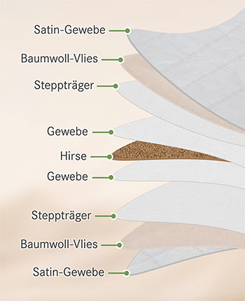 Flexibel nachgiebige, temperaturausgleichende Bio-Hirseschalen aus kontrolliert biologischem Anbau für sanften, natürlichen Tiefendruck.