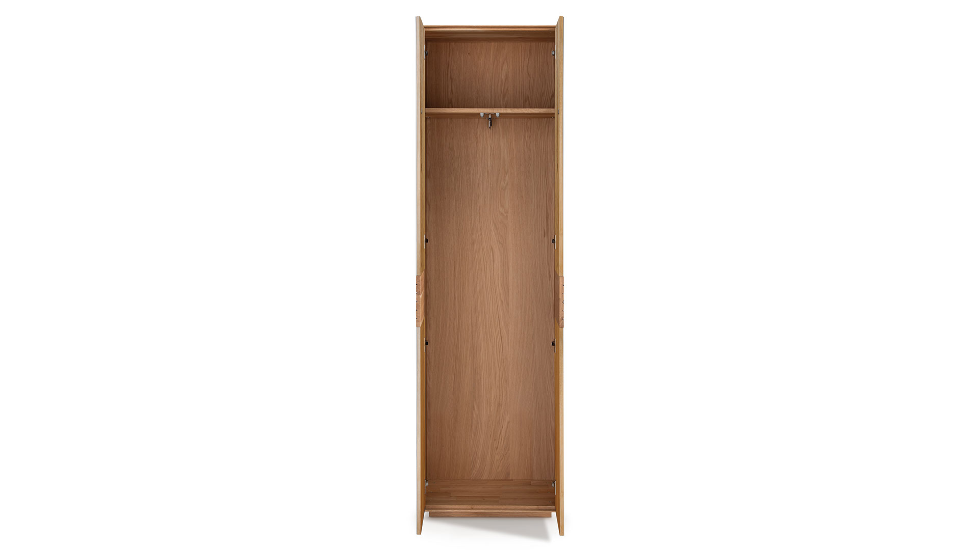 Im Inneren steht Ihnen ein Fachboden inklusive ausziehbarer Kleiderstange zur Verfügung, sodass Sie Ihre Garderobe übersichtlich und komfortabel organisieren können. Mit seiner langlebigen Verarbeitung und der natürlichen Formensprache fügt sich Dielenschrank "Fiella" harmonisch in Ihr Zuhause ein.