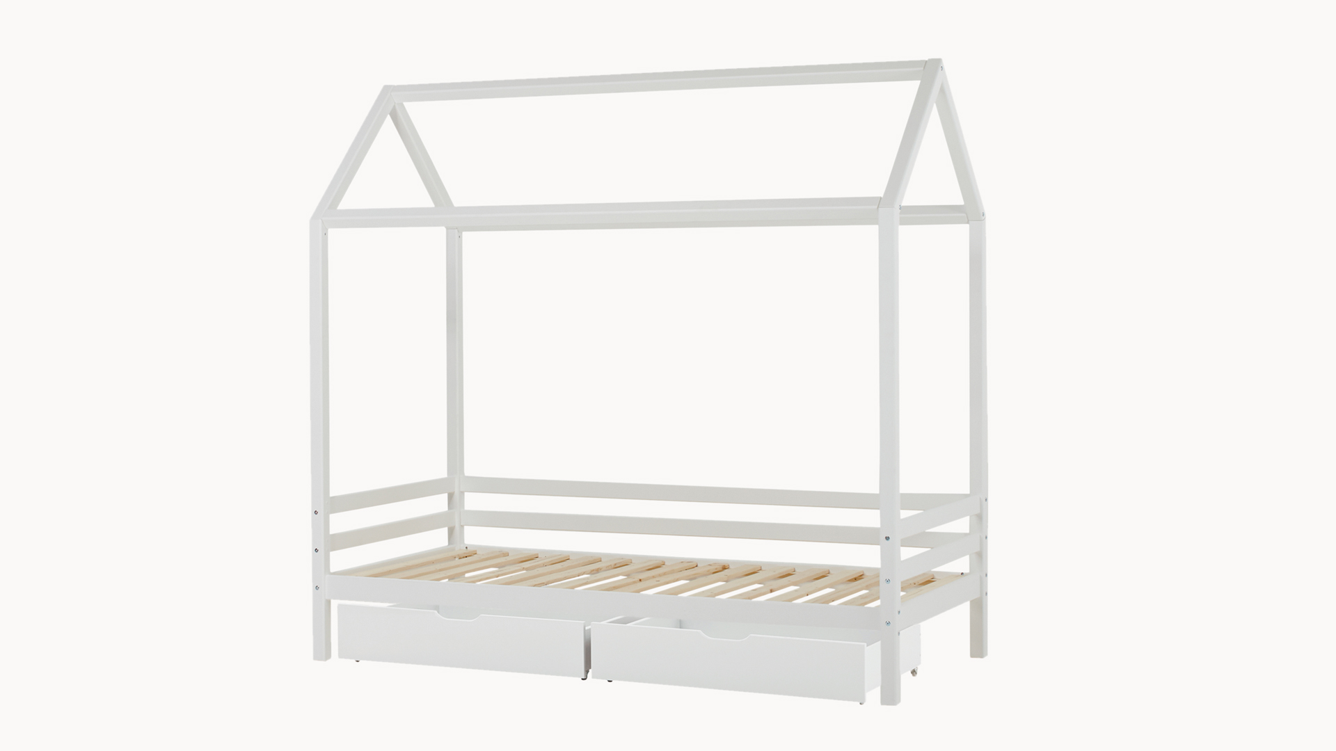 Dank des durchdachten Designs mit einem Sicherheitsgeländer an drei Seiten sorgt für ein sicheres Schlafgefühl und schafft Vertrauen - Nacht für Nacht. Unter dem Bett ist zusätzlicher Platz für praktischen Stauraum. Die optionalen Schubkästen auf Rollen nutzen diesen Raum besonders clever, darin finden zum Beispiel Bettwäsche oder Spielzeug ein neues Zuhause.