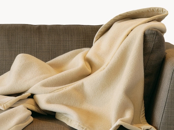 Auch auf Synthetik verzichten wir bei den Schurwolldecken, da Wolle und Naturhaar bis zu 33 % ihres Eigengewichts an Feuchtigkeit speichern können, ohne dass sie sich feucht anfühlen.