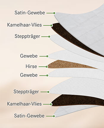 100 % feinstes, naturbelassenes Kamelflaumhaar, komplett entgrannt und schadstoff-geprüft.
