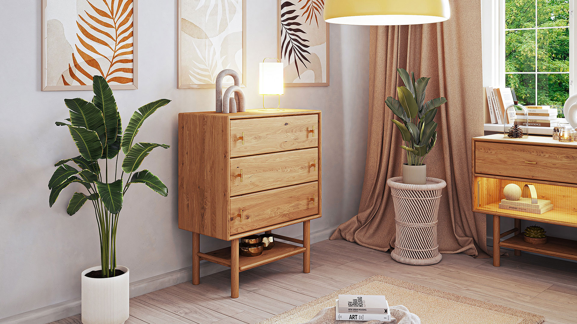 Ob Kernbuche oder Wildeiche, ob mit Fächern, Schubladen oder Türen – die fünf Varianten der Kommode "Serea" bieten Ihnen Stauraum, der durchdacht und zugleich zeitlos gestaltet ist. So fügt sich die Kommode mühelos in unterschiedliche Wohnstile ein.
