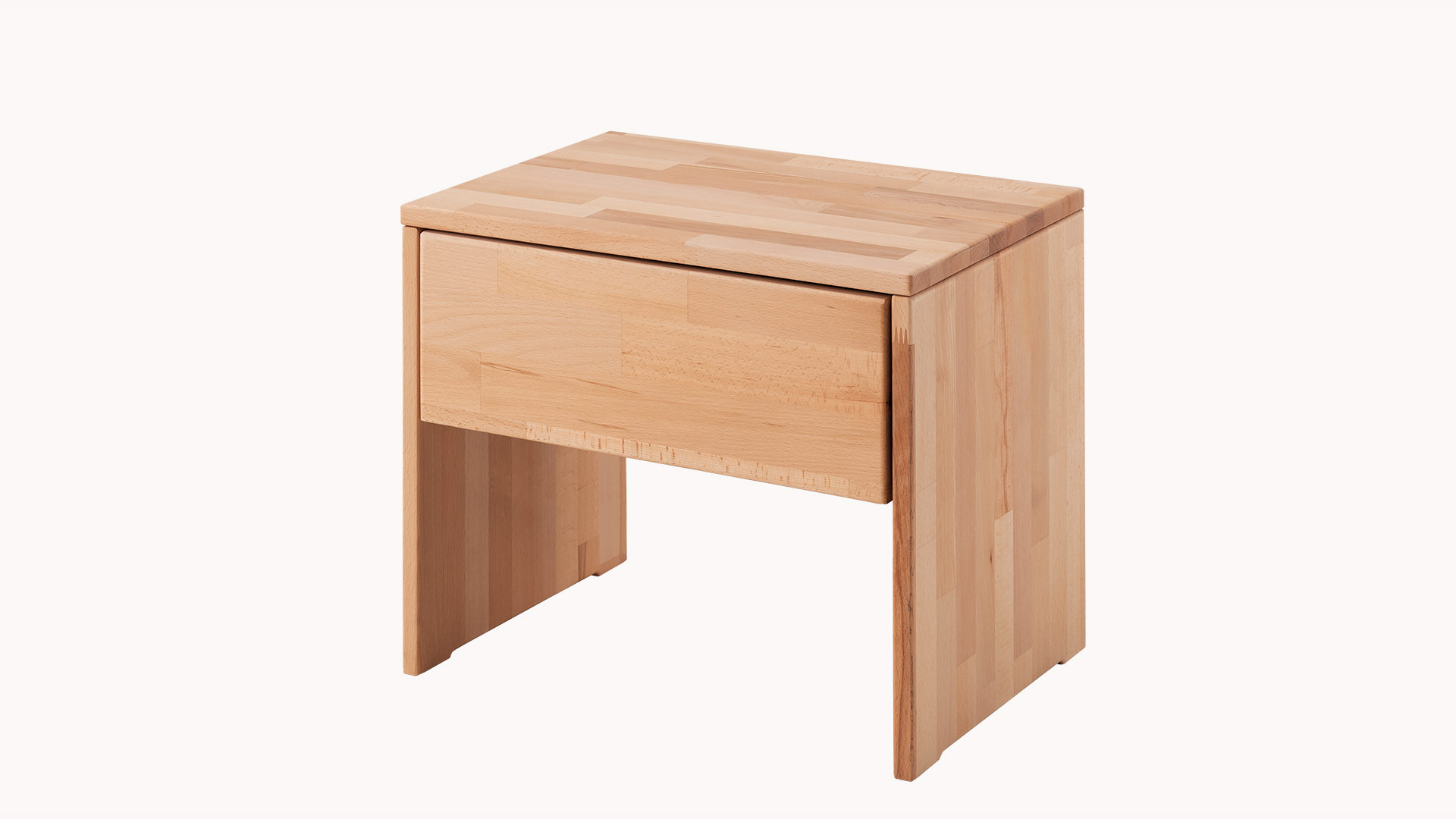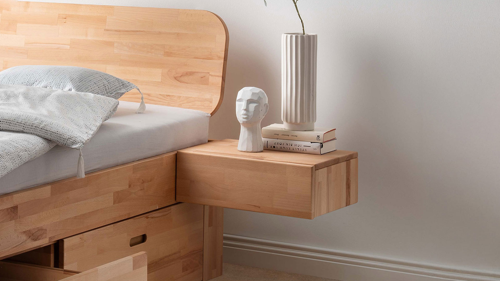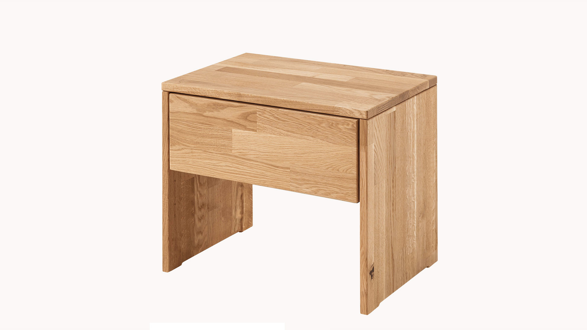 Nachttisch "Lunara" ergänzt Ihr Schlafzimmer mit einer klaren, harmonischen Form und bietet Platz für alles, was Sie nachts gerne griffbereit haben. Verfügbar in den Holzarten Kernbuche, Wildeiche, Buche Mokka und Buche Weiß fügt er sich mühelos in verschiedene Einrichtungsstile ein.