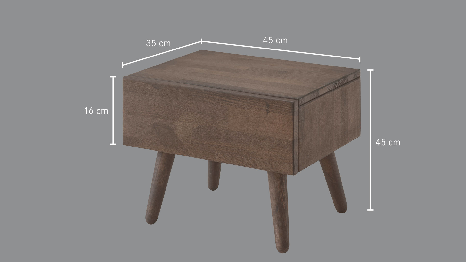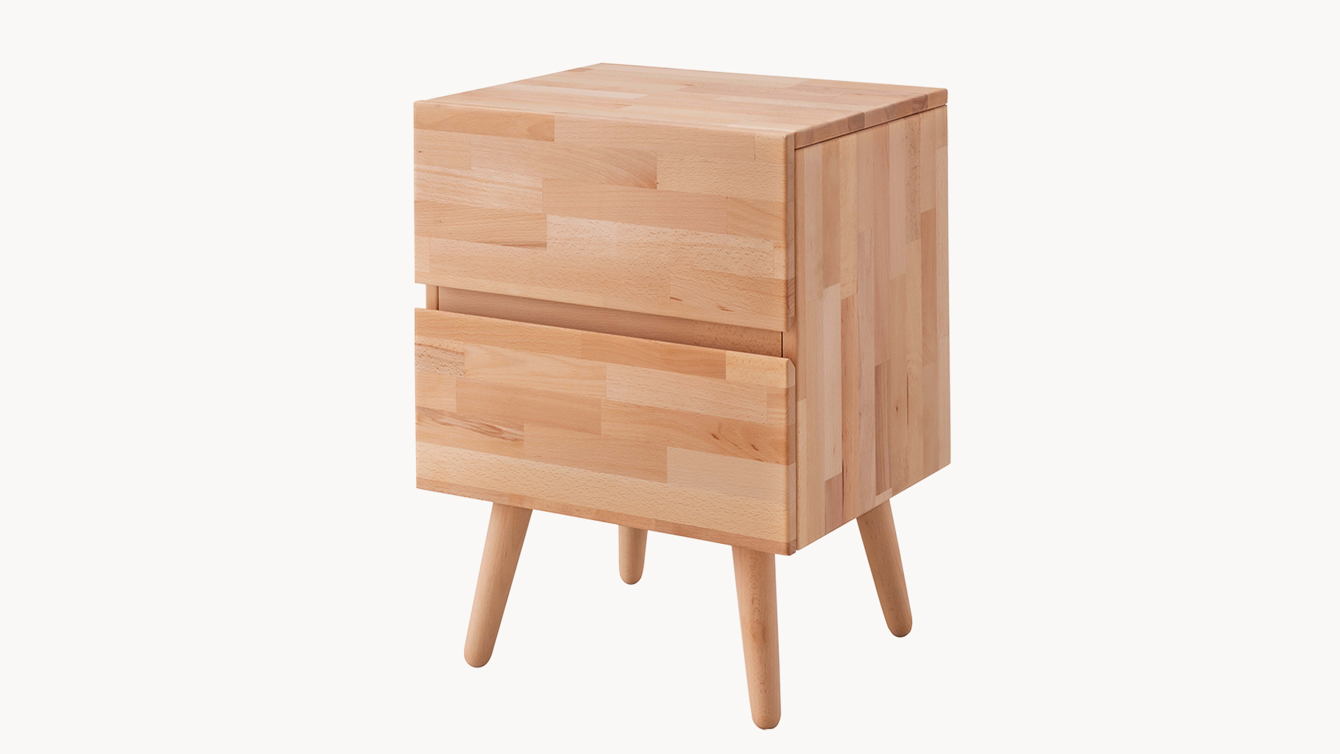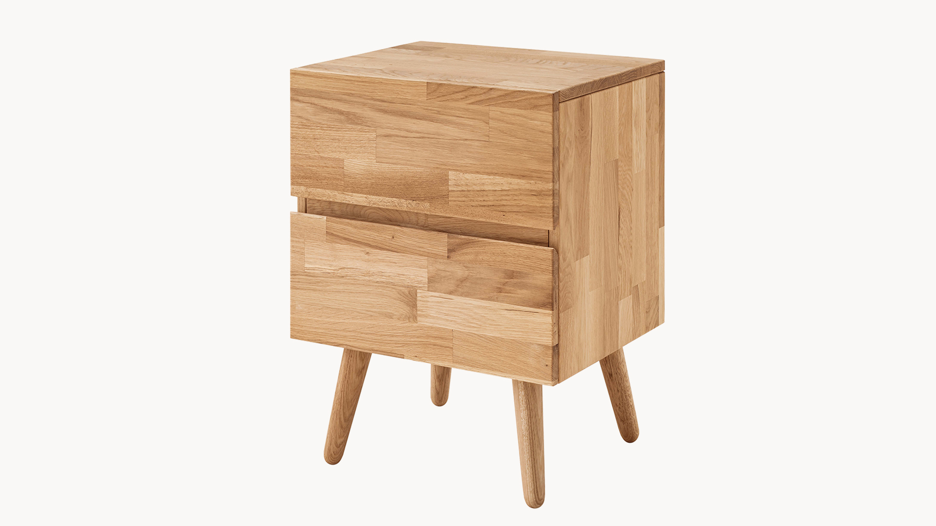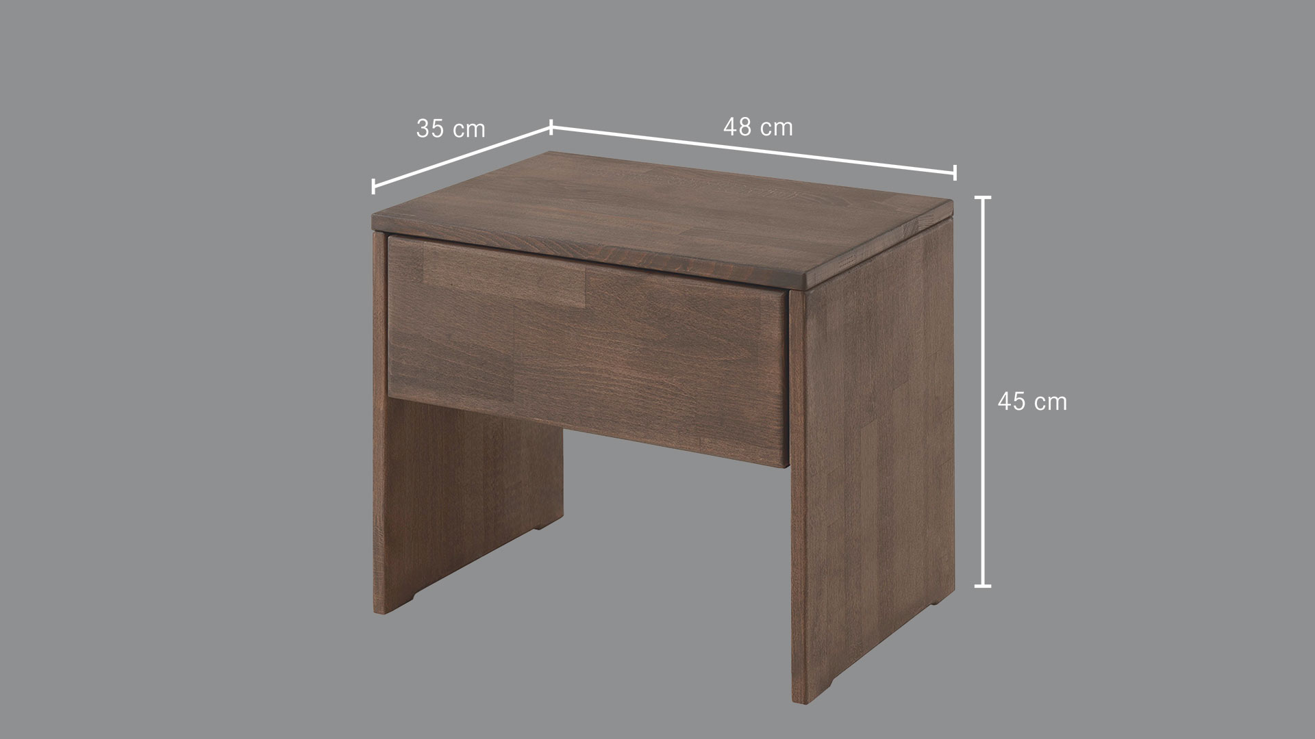 Nachttisch "Lunara" ergänzt Ihr Schlafzimmer mit einer klaren, harmonischen Form und bietet Platz für alles, was Sie nachts gerne griffbereit haben. Verfügbar in den Holzarten Kernbuche, Wildeiche, Buche Mokka und Buche Weiß fügt er sich mühelos in verschiedene Einrichtungsstile ein.