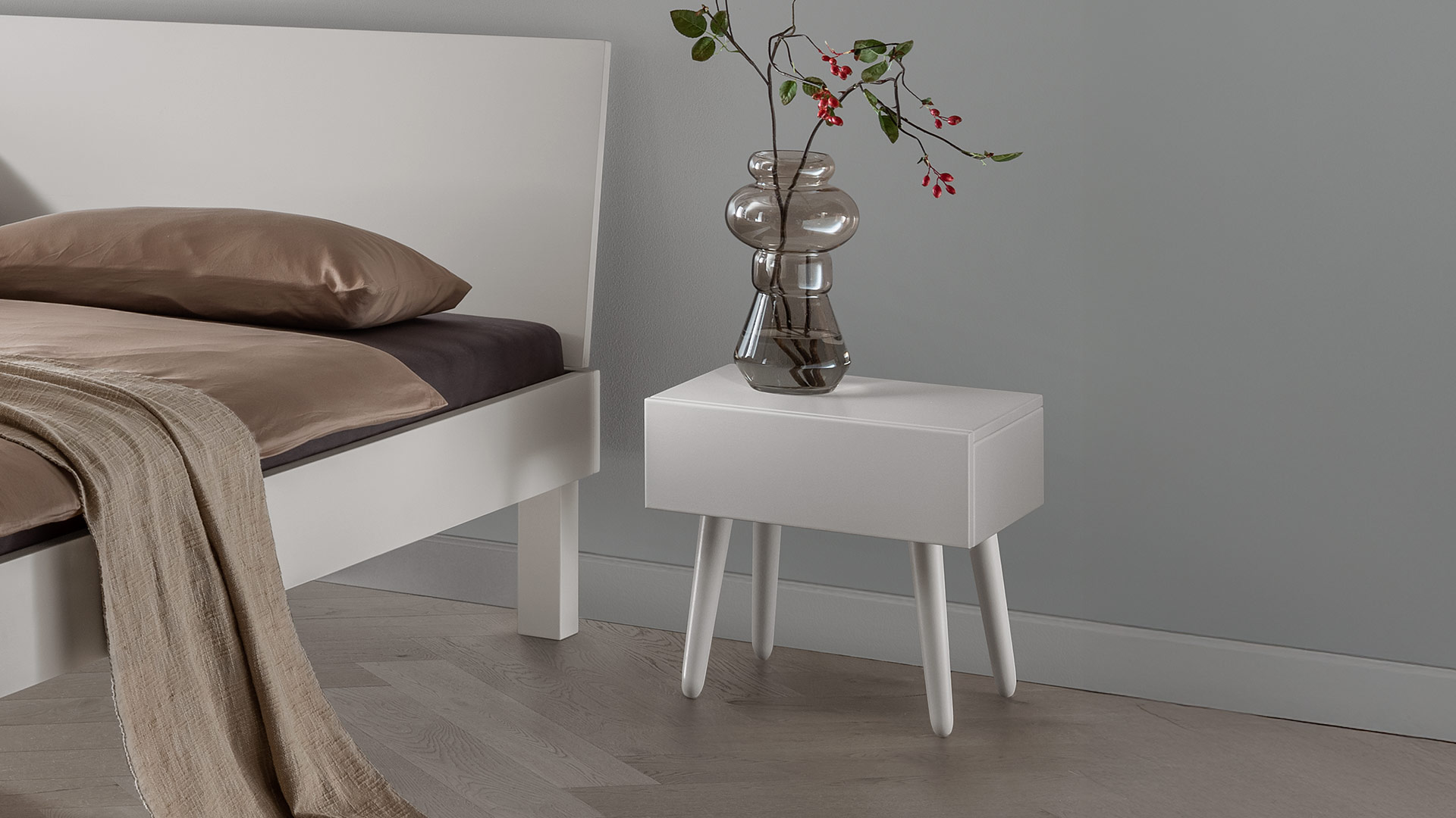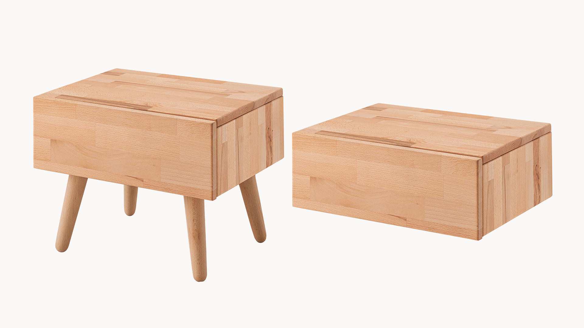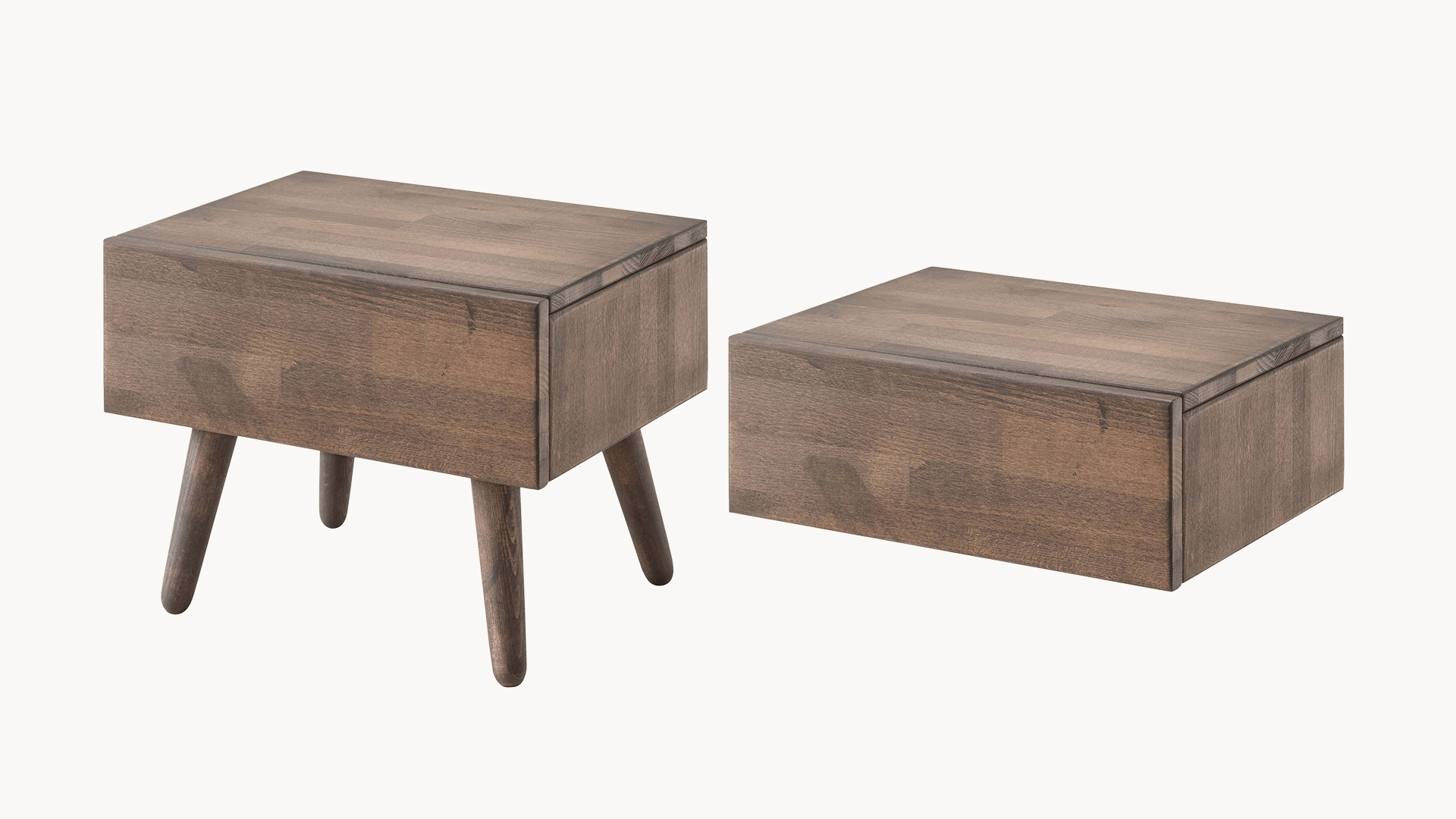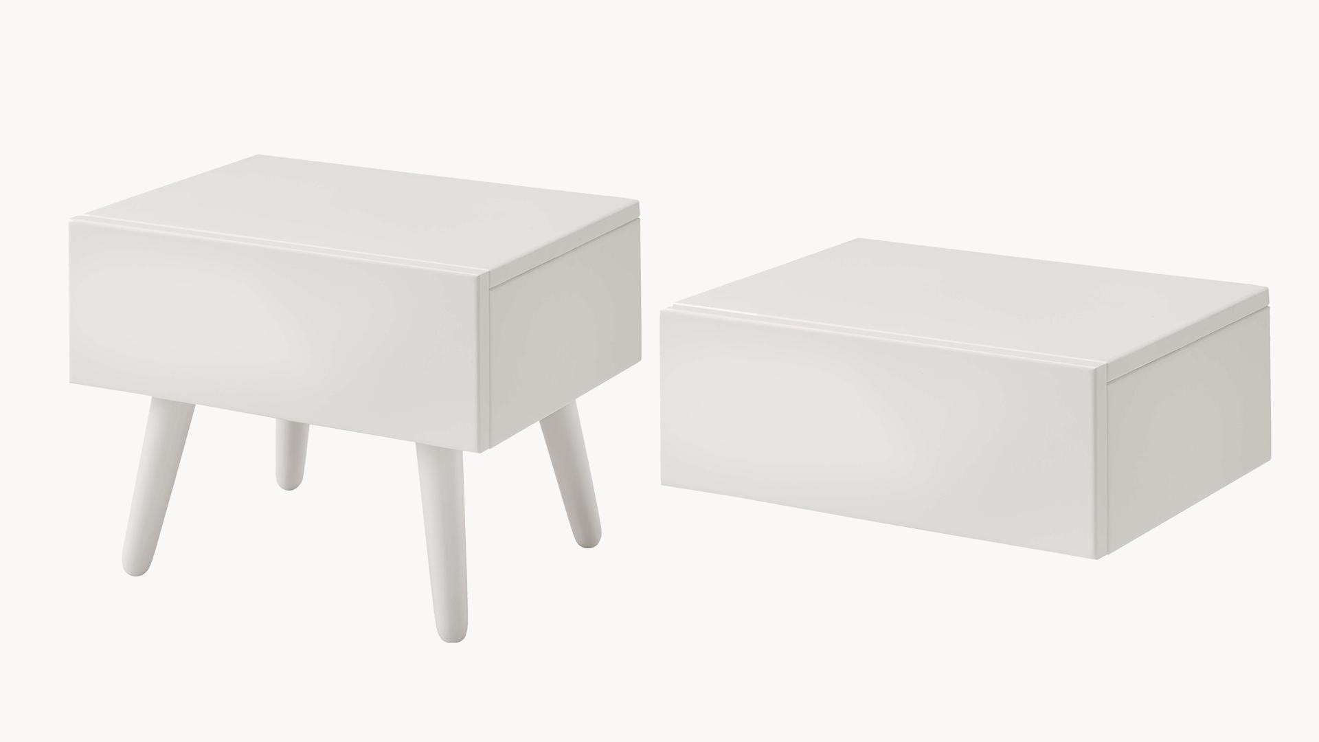 Ihnen stehen 3 Varianten vom Nachttisch zur Auswahl: Variante 01 besitzt eine Schublade und lässt sich auch ohne Füße als schwebende Nachtkonsole direkt an der Bettseite montieren. Variante 02 ist die klassische Standversion mit einer Schublade. Variante 03 bietet zwei Schubladen und kann, wenn gewünscht, auch ohne Füße sicher neben dem Bett platziert werden. Nachttisch "Lunara" vereint ansprechendes Design mit funktionalem Mehrwert und macht an Ihrer Bettseite immer eine gute Figur.