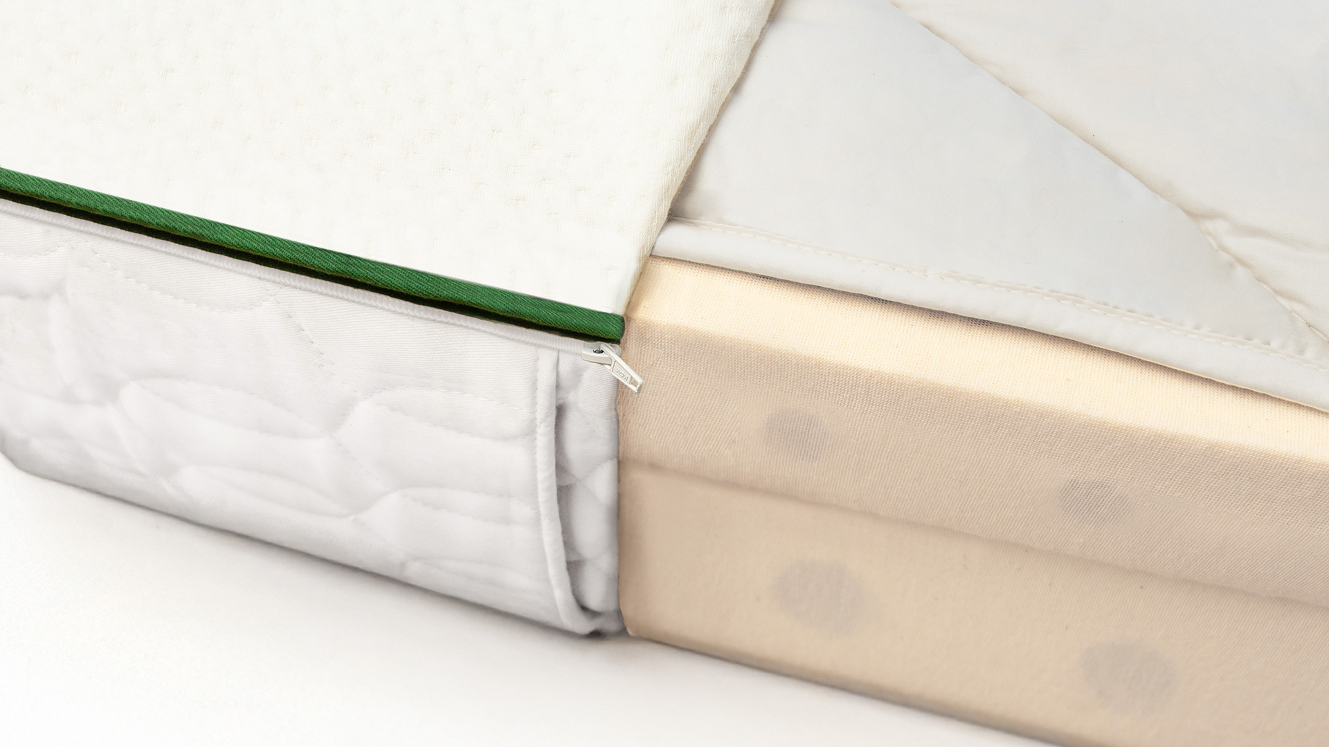 Komfort-Schicht und Basis-Schicht sind zusätzlich separat mit einem Bezug aus Baumwoll-Feinjersey-Trikot/kbA geschützt.