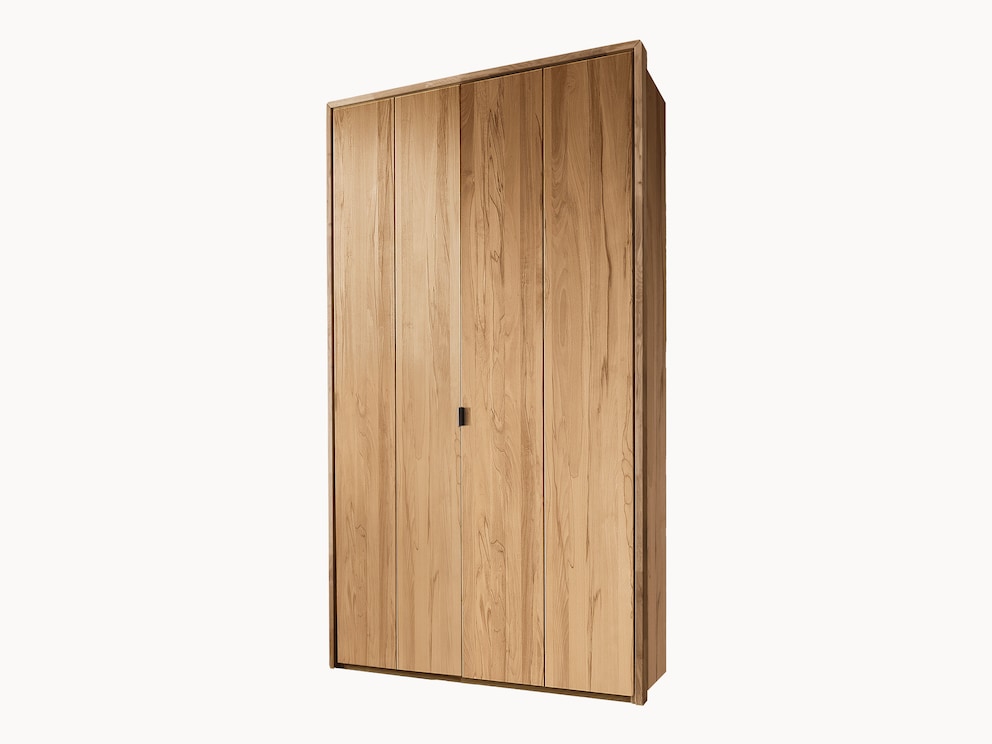 Die edlen Massivholz-Türen dieses klassisch eleganten Kleiderschrankes sind aufwändig längs stabverleimt. Die intensive Maserung der Hölzer verläuft damit ungestört über die komplette Höhe der Tür und kommt perfekt zur Geltung. Jede Tür hat mittig eine senkrecht verlaufende Ziernut. Dieses pfiffige Detail nimmt der Holzfront elegant die Schwere. Sie möchten gerne einen großzügigen Spiegel im Schlafzimmer? Dann ist "Varadero" mit Spiegelfronten die perfekte Lösung! Egal, für welche Türen Sie sich entscheiden - die dezenten Griffe in Edelstahl-Optik fügen sich immer harmonisch in das Gesamtbild ein.