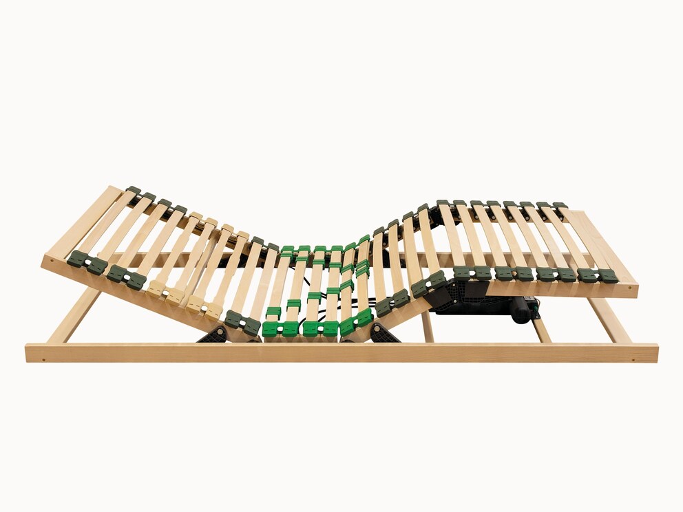 Luxuriöser Elektro-Lattenrost mit verstellbarem Kopf- & Fußteil, hier mit zweigliedrigem Rückenteil