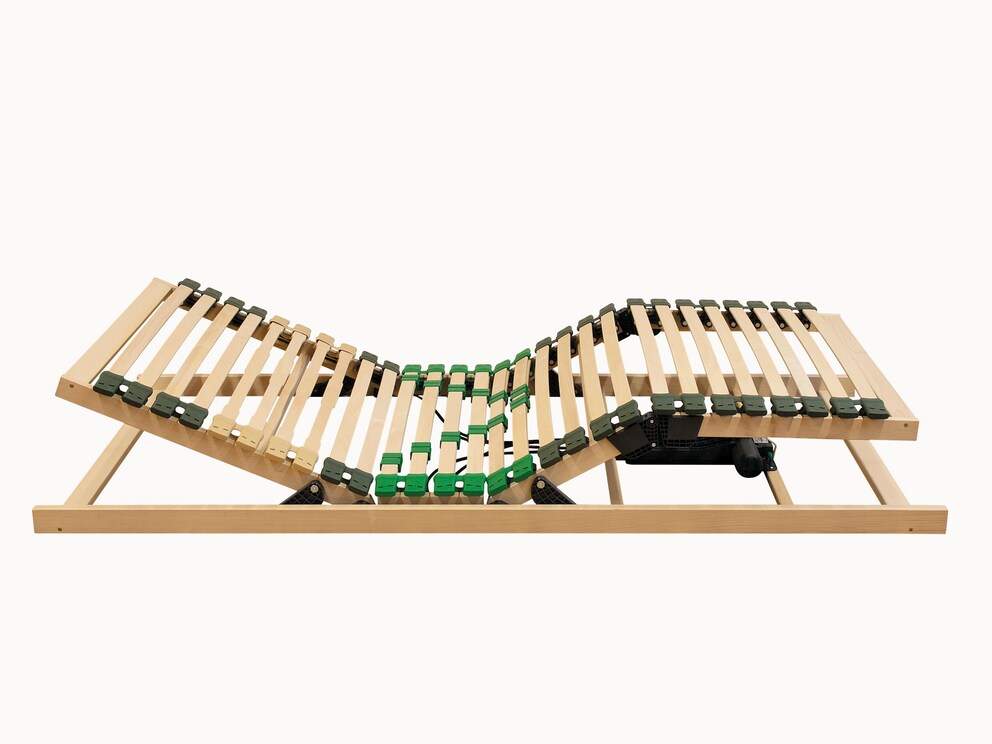 Hochstabiler Elektrolattenrost mit stufenloser Verstellung, hier mit zweigliedrigem Rückenteil