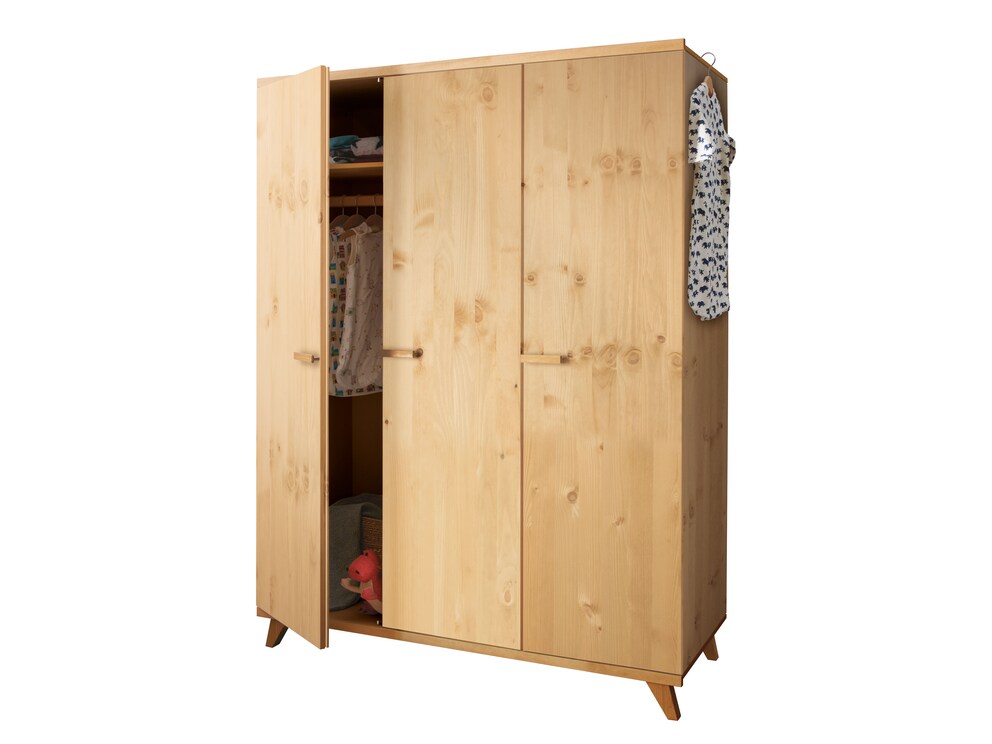 Er wird Ihr Kind lange begleiten, denn er passt mit seinem modern zeitlosen Stil auch bestens in ein cooles Jugendzimmer. Der geräumige 3-Türer bietet viel Platz für Kleidung und alles, was sonst noch im Babyzimmer Platz braucht. Der praktische Kiefernholz-Kleiderschrank präsentiert sich in freundlichem Weiß mit gelaugten Akzenten oder komplett in gelaugt.
