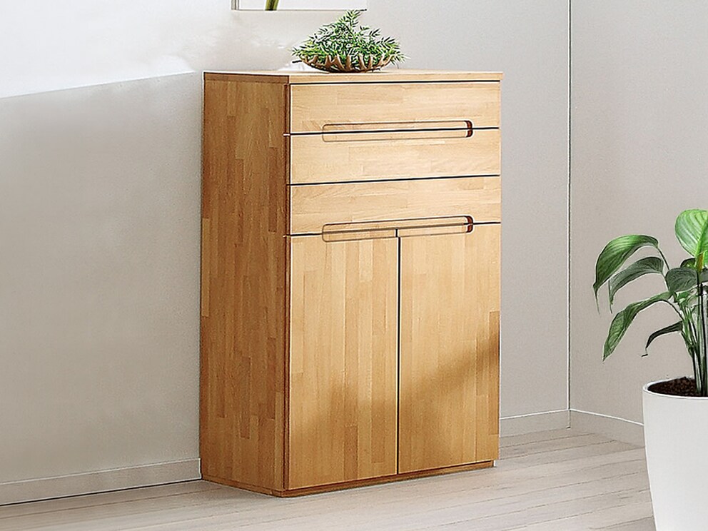 Diese edle Kommode erhalten Sie ganz nach Ihrem persönlichen Geschmack in lebhafter Kernbuche oder edler Wildeiche. Türen und Schubladen der Kommode lassen sich an markanten Griffmulden öffnen. Diese bilden einen faszinierenden Blickfang bei diesem ansonsten sehr geradlinig und schnörkellos gehaltenen Möbelstück.