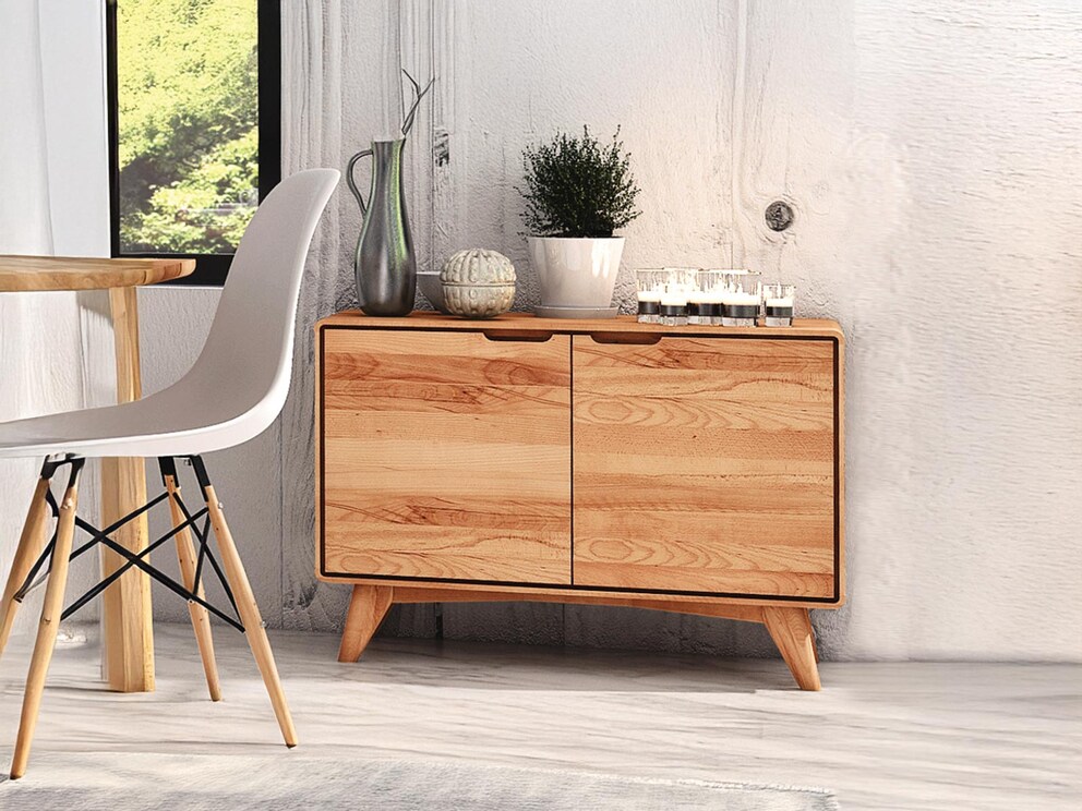 ...sind hier praktische Einkerbungen in die Türen und Schubladen gefräst. Alle Kommoden bieten einen attraktiven Kontrast zwischen dem abgerundeten Korpus und eckig gearbeiteten Türen und Schubladen. Die konisch zulaufenden Füße verleihen der Kommode eine optische Leichtigkeit. Dank den 6 verschiedenen Varianten sind sie doch komplett unterschiedlich und individuell. Hier ist nicht nur Platz für Deko-Artikel oder Zeitschriften auf der Kommode, sondern auch viel Platz für Ordnung im Korpus-Inneren. Nur Schubladen, nur Türen oder eine Mischung aus beidem - es ist für jeden Geschmack etwas dabei!