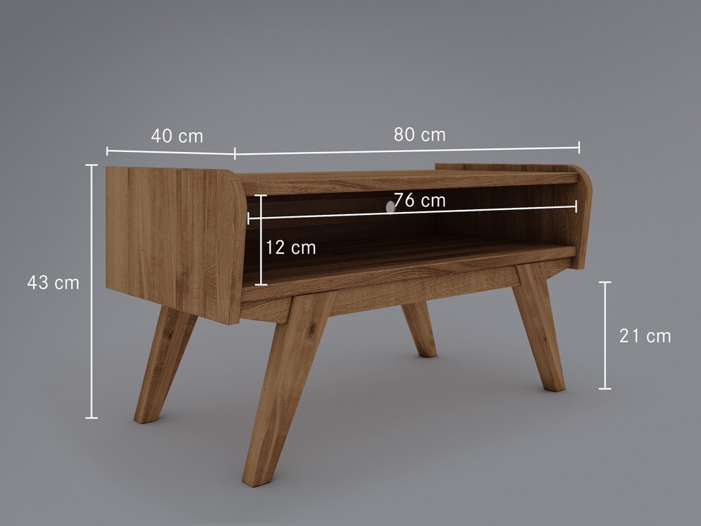 Oben sorgfältig abgerundete, nach vorne gezogene Seitenteile umrahmen die etwas nach innen versetzte Front des Lowboards. "Lasala" hat eine markante Zarge, in die die Füße des Lowboards handwerklich perfekt schräg eingearbeitet sind. Schwarze Knopfgriffe aus Metall runden das Gesamtbild ab. Die schönen TV-Möbel haben aber auch einen hohen praktischen Wert für Ihre Multimedia-Geräte. Die großzügigen Gerätefächer verfügen über 2 Kabelauslässe - sagen Sie also lästigem Kabelsalat für immer Lebwohl. Sie erhalten "Lasala" wahlweise in massiver Kernbuche oder Wildeiche. Wir bieten das charmante Lowboard in 3 Varianten an. Suchen Sie sich einfach die Ausführung aus, die am besten zu Ihren Ansprüchen passt.