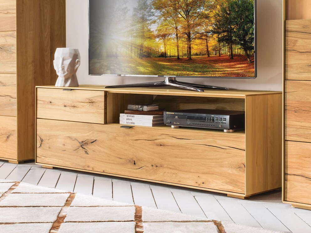 Geräumiges und attraktives Lowboard, hier Variante 02 in extravaganter Wildkernbuche