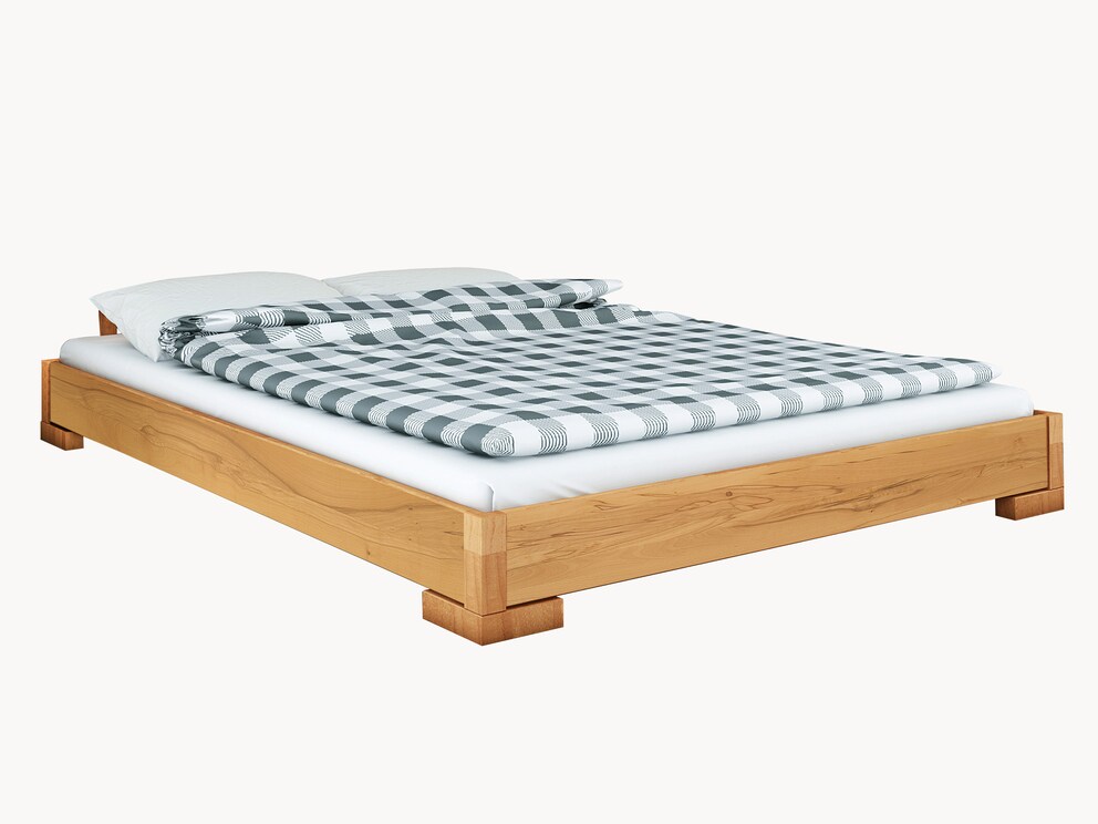 Bezeichnend für dieses elegant-moderne Bett ist die niedrige Höhe. Die bewusst schlicht gestalteten Bettfüße haben die Stärke des Bettrahmens und sind waagrecht angebracht. So entsteht der Eindruck, dass die Liegefläche auf starken Holzwinkeln ruht. "Genova" erhalten Sie ganz nach Geschmack in lebhafter Kernbuche oder edler Wildeiche.