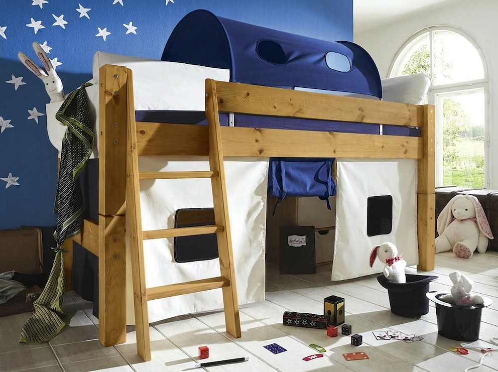 Mini-Hochbett Pico ist ein Spielparadies - hier aus massivem Buchenholz