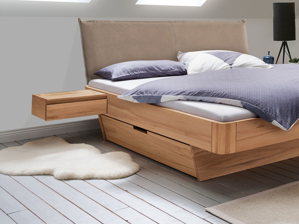 Schlicht, elegant und äußerst praktisch - Nachtkonsole Moderna, hier in lebhafter Kernbuche