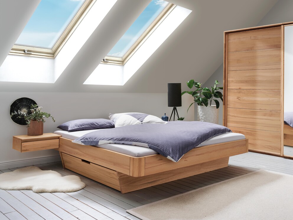 Schlicht, elegant und äußerst praktisch - Nachtkonsole Moderna, hier in lebhafter Kernbuche