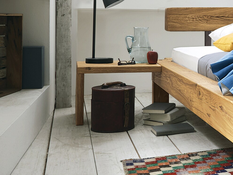 Dieser geradlinige Nachttisch in rustikalem Design passt perfekt zu Ihrem Massivholzbett oder Schwebebett "Madea". Die natürlichen Astrisse werden in einem aufwändigen Produktionsverfahren liebevoll betont. So wird Ihr Möbelstück zu einem unverwechselbaren Unikat.