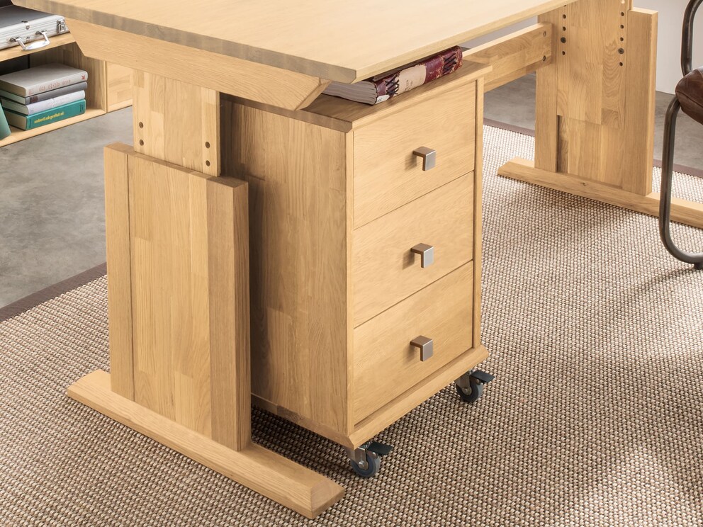 Geräumiger Roll-Container mit 3 Schubladen, hier aus markantem Eichenholz