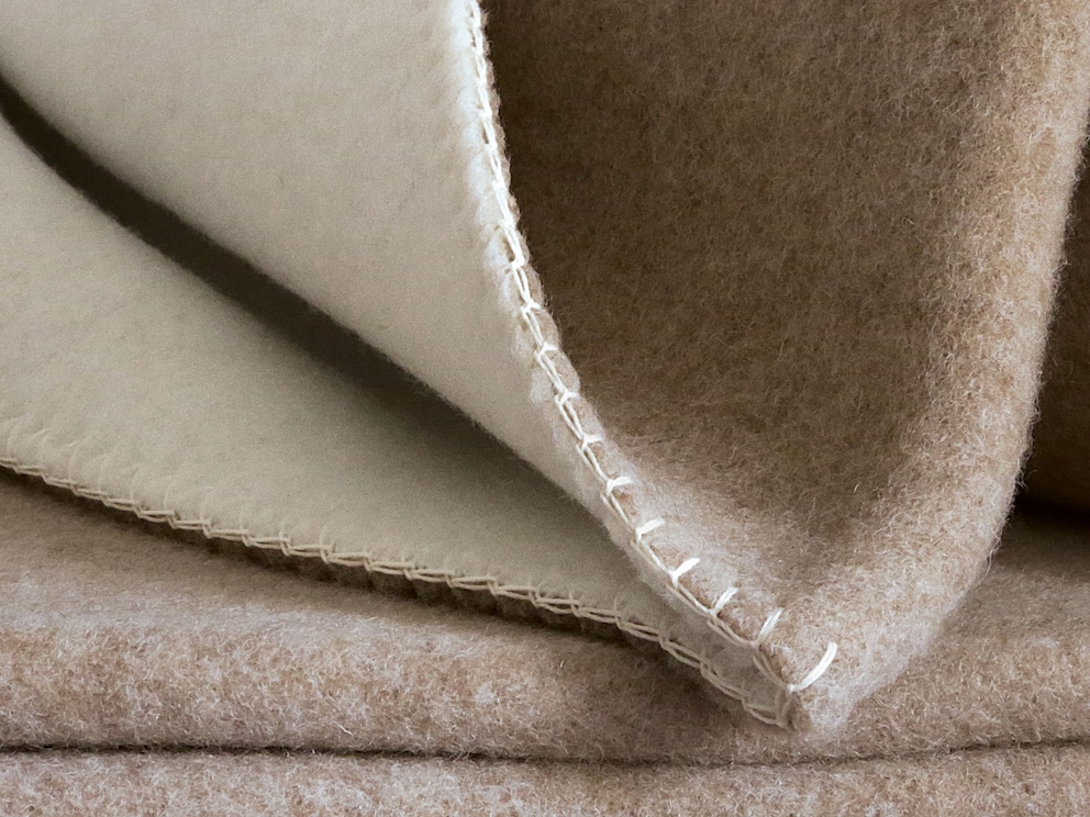 Unsere Schafschurwoll-Naturhaardecke "Selandia" wird aus der Wolle des Merinoschafs hergestellt. Auf Grund ihres außergewöhnlichen Fells, welches sich jedem Klima anpassen kann, leben Merinoschafe auf der ganzen Welt. Die Wolle für unsere "Selandia" beziehen wir nur von Schafen aus deutscher Tierhaltung. Diese besondere Decke wird durch eine sorgfältige Auswahl der Wolle in zwei verschiedenen Farben gewebt und erhält somit ihre edle Double-Face Optik.