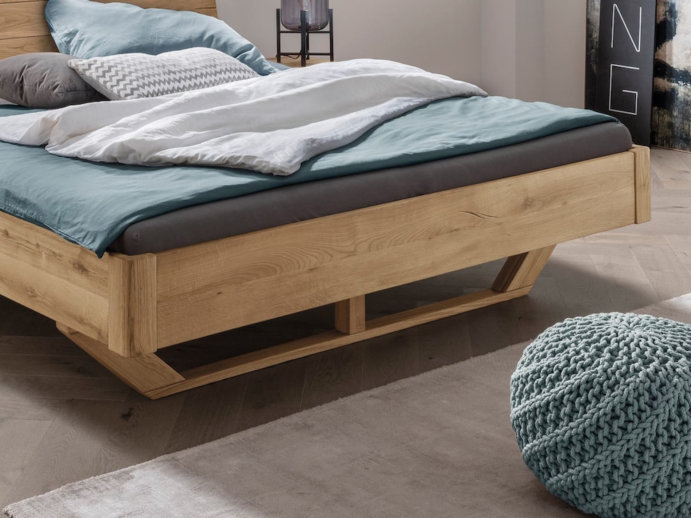 Das Schwebebett Novito aus edlem Wildeichenholz lässt Ihr Schlafzimmer erstrahlen