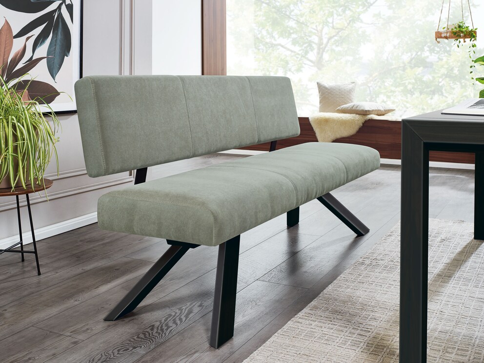 ...wenn Sie nicht gerne Gäste haben. Denn auf dieser luxuriös gepolsterten Sitzbank bleibt man gerne etwas länger sitzen. Die großzügig ausgestellten Bankbeine bringen skandinavisches Flair in Ihr Esszimmer. Wählen Sie aus vier erlesenen Bezugsstoffen in unzähligen Lieblingsfarben Ihren Wunschbezug.