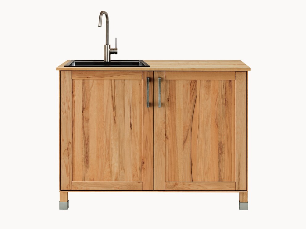 Spülenunterschrank in Variante 01 mit 2 Türen, hier in lebhaften Kernbuchenholz