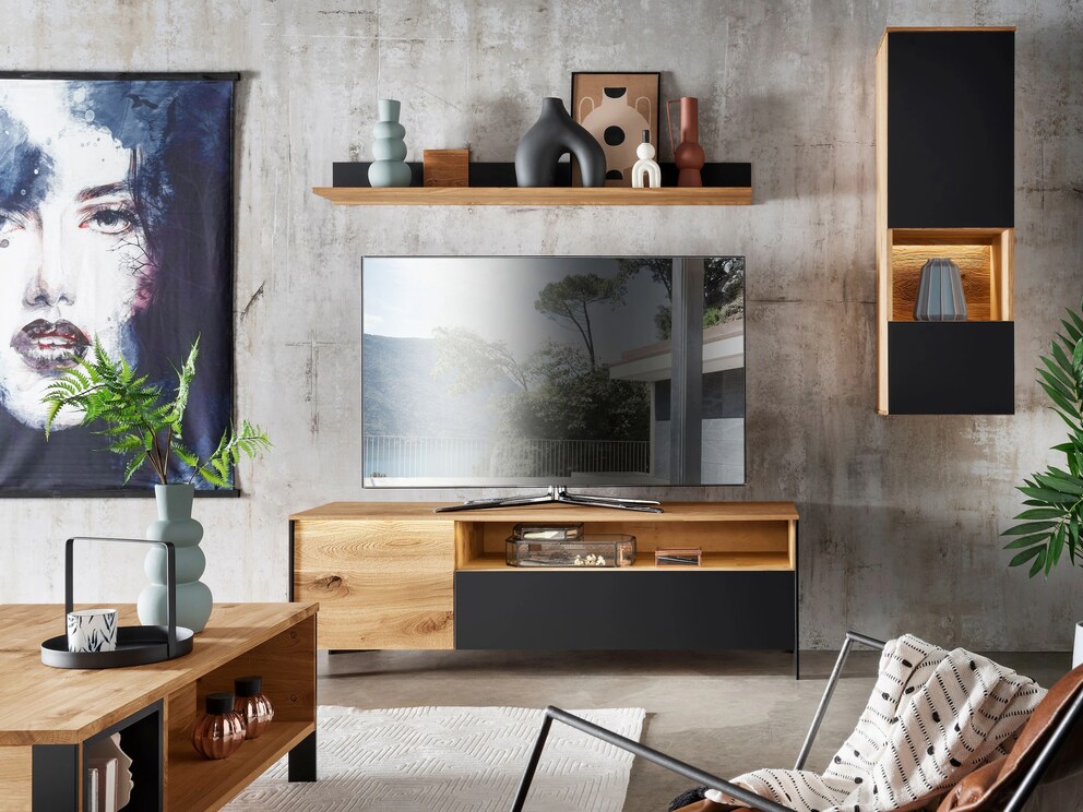 Modern mit urbanem Flair - Wohnwand Fira aus massiver Wildeiche, hier Variante 01