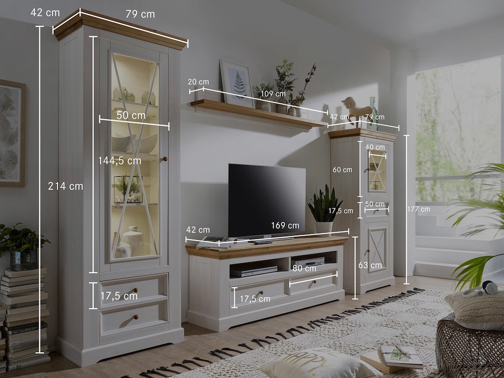 Gemütliche Wohnwand im Landhausstil - hier Variante 03 mit Beleuchtung