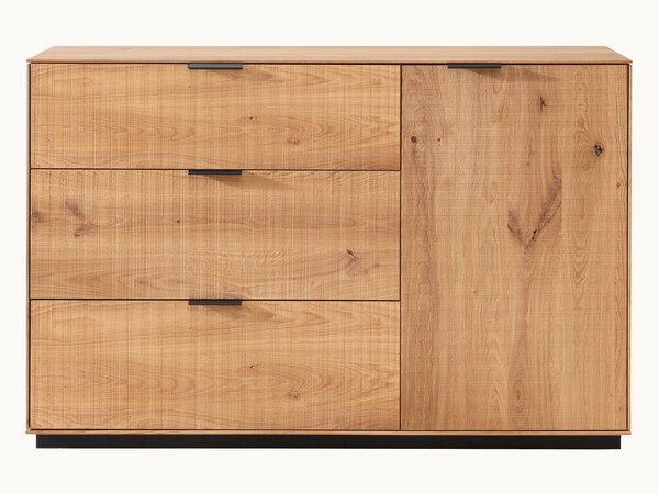Geradlinige, zeitlos elegante Massivholzkommoden aus lebhaft gemaserter Kernbuche bringen Natürlichkeit und Lebensqualität in Ihr Schlafzimmer und bieten Ihnen praktischen Stauraum. Mehr lesen...