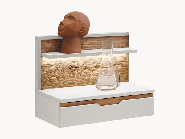 Ein Schlafplatz ohne Nachttisch? Kaum vorstellbar! Bett und Nachtkonsole sind das perfekte Paar für eine erholsame Nacht und ein frisches Erwachen am Morgen. Beim einen ist es der Wecker und ein Glas Wasser, beim Anderen die Bettlektüre oder wichtige Medikamente. Nachttische erfüllen unterschiedlichste Zwecke, sodass eine Vielzahl an Varianten geboten wird. Manchen reicht eine einfache Ablagefläche, Andere benötigen mehr Stauraum in Ihrer Nachtkonsole. Nachttische mit Schubladen bieten genügend Platz für Bücher und Co. Wir haben Nachttische mit einer Schublade oder mehreren Schubladen für Sie im Angebot.