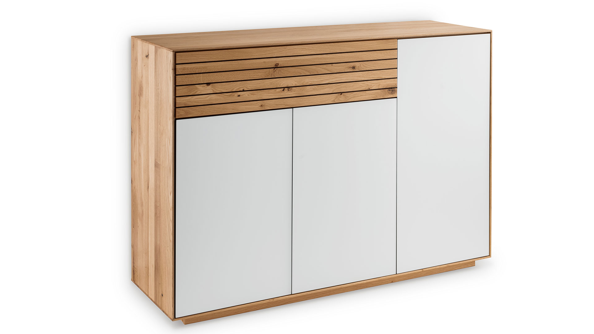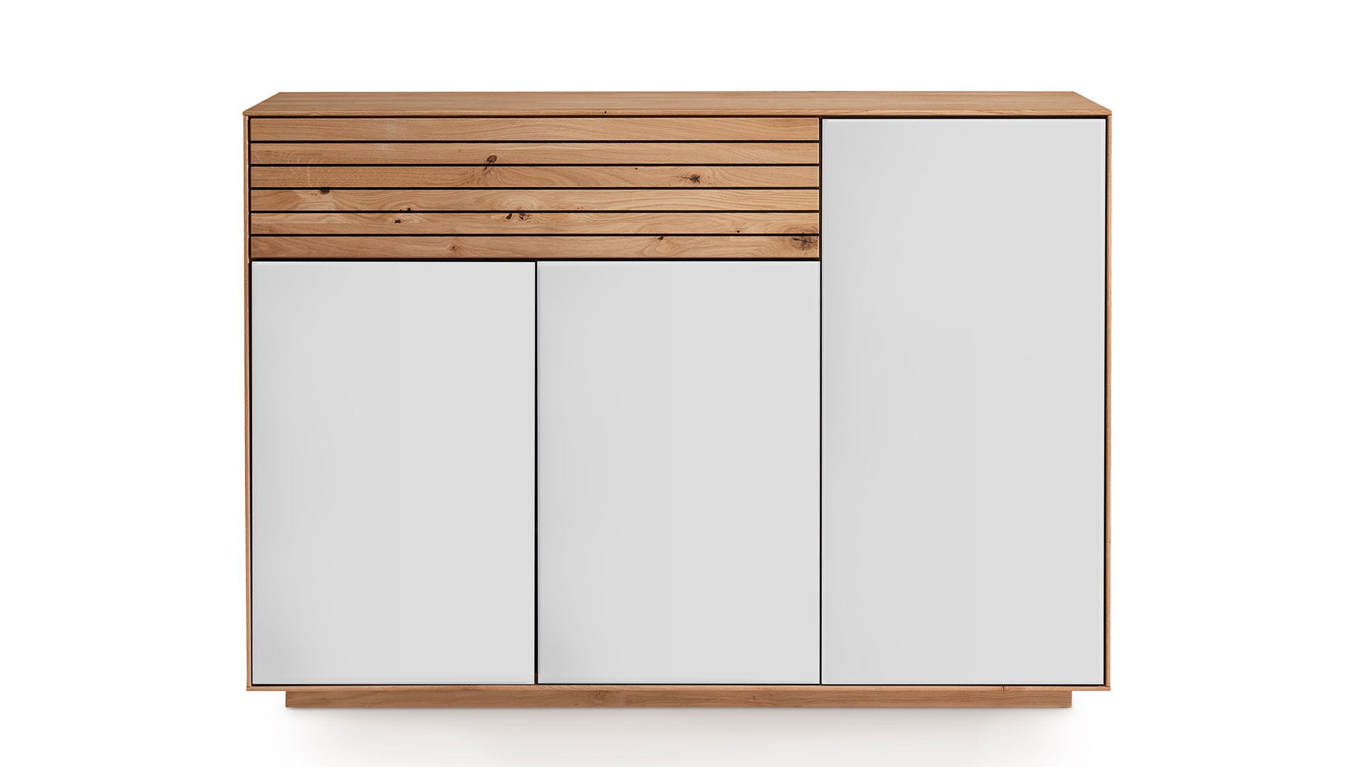 Sideboard "Fiella" steht für Moderne und Klarheit - hier rechts die Variante mit Schublade