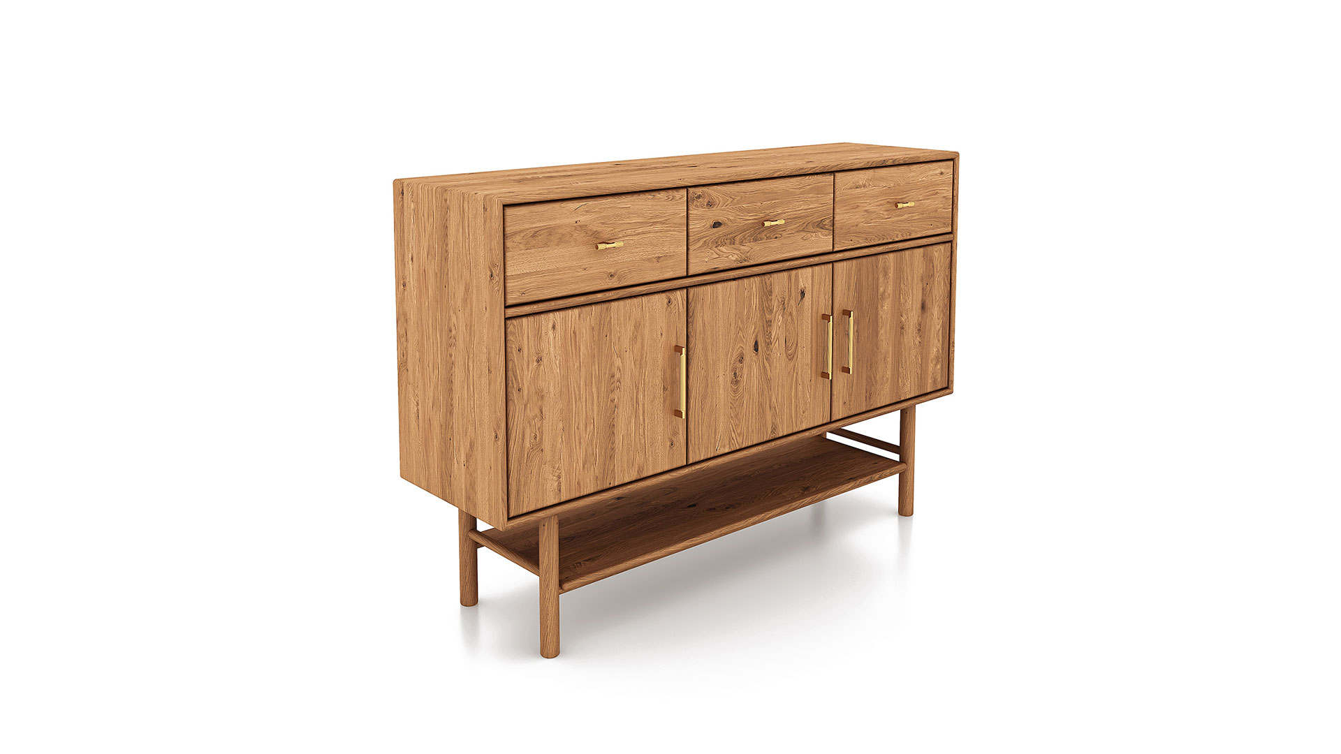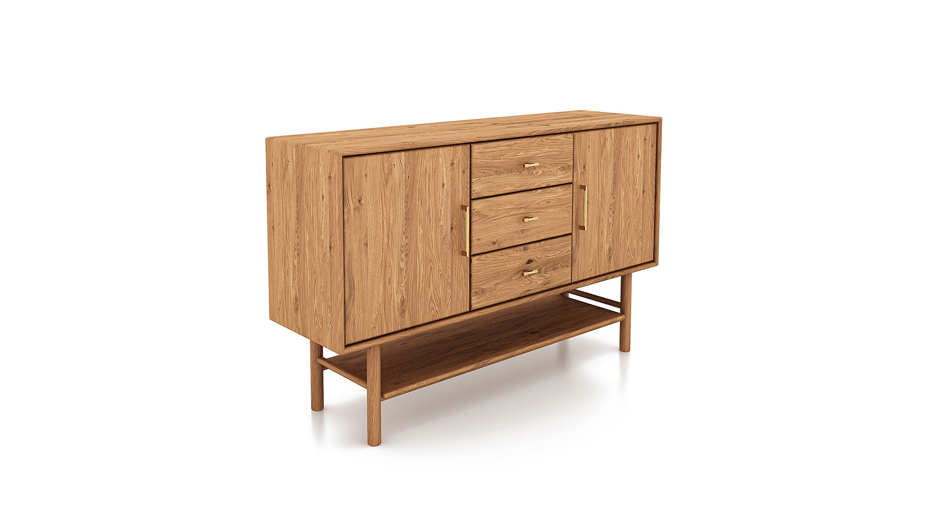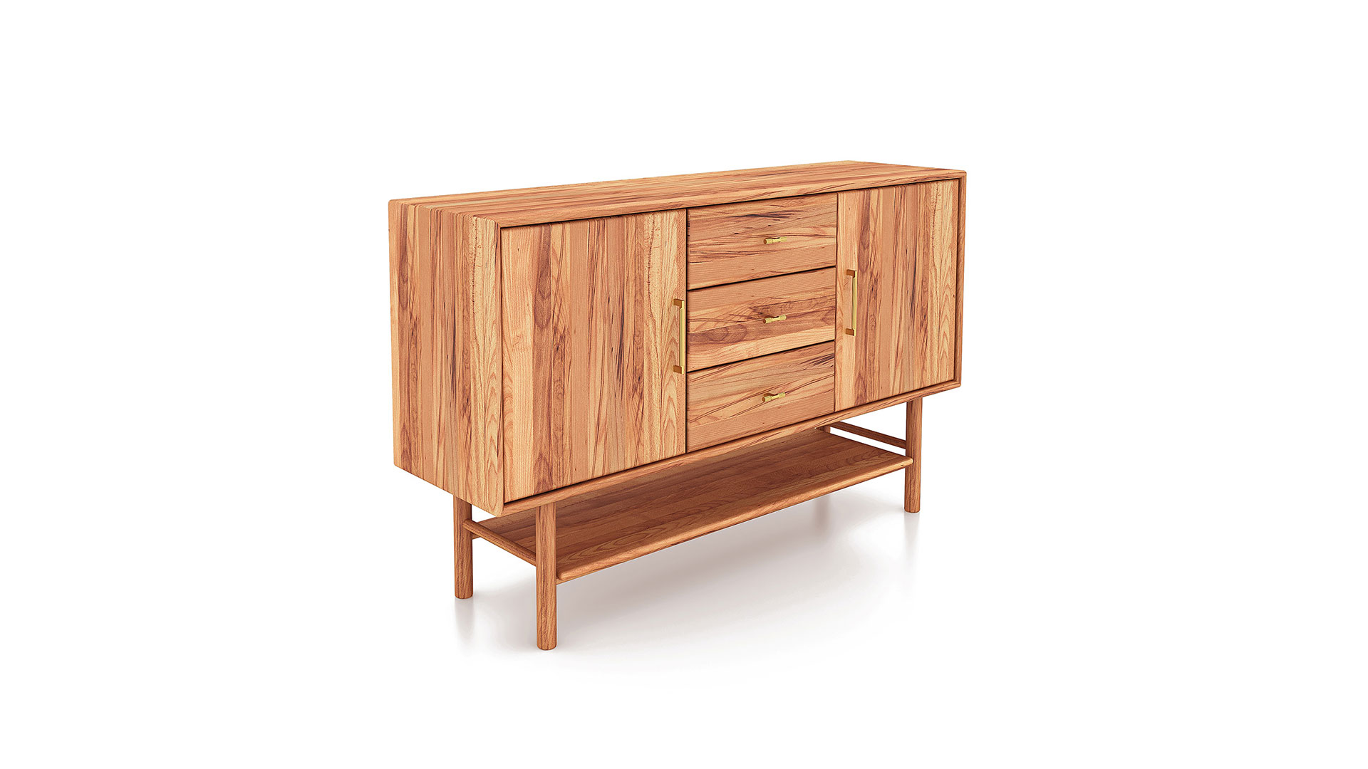Gefertigt aus massivem, geöltem Holz mit lebendiger Maserung zeigt sich "Serea" je nach Ausführung in warmen Naturtönen oder in einem tiefem Mokka-Farbton. So verbindet das Sideboard natürliche Ausdruckskraft mit Designkultur und wird zum Blickfang in jedem Raum.