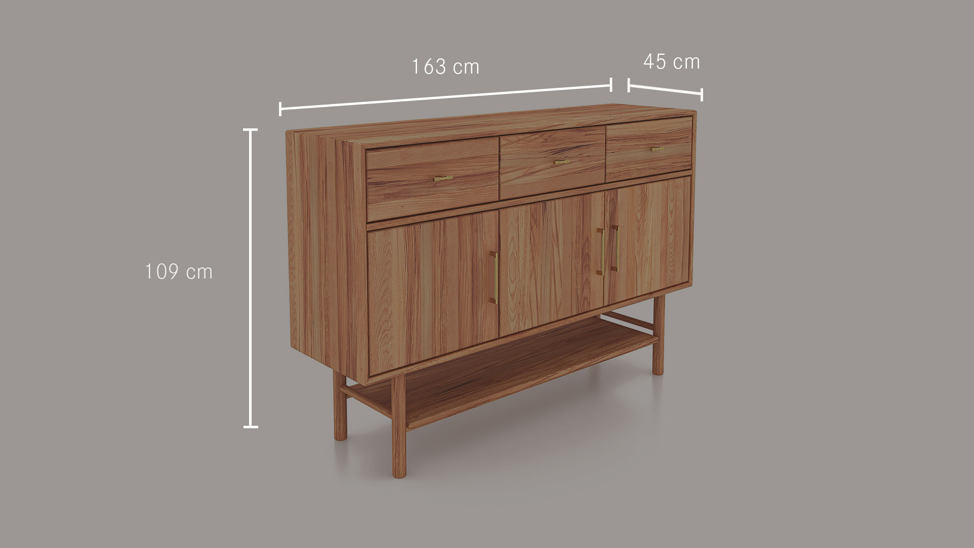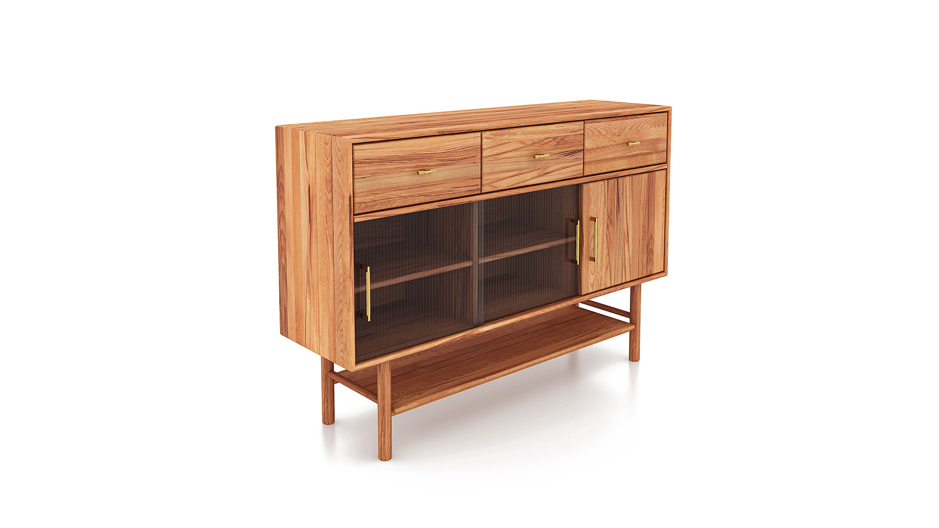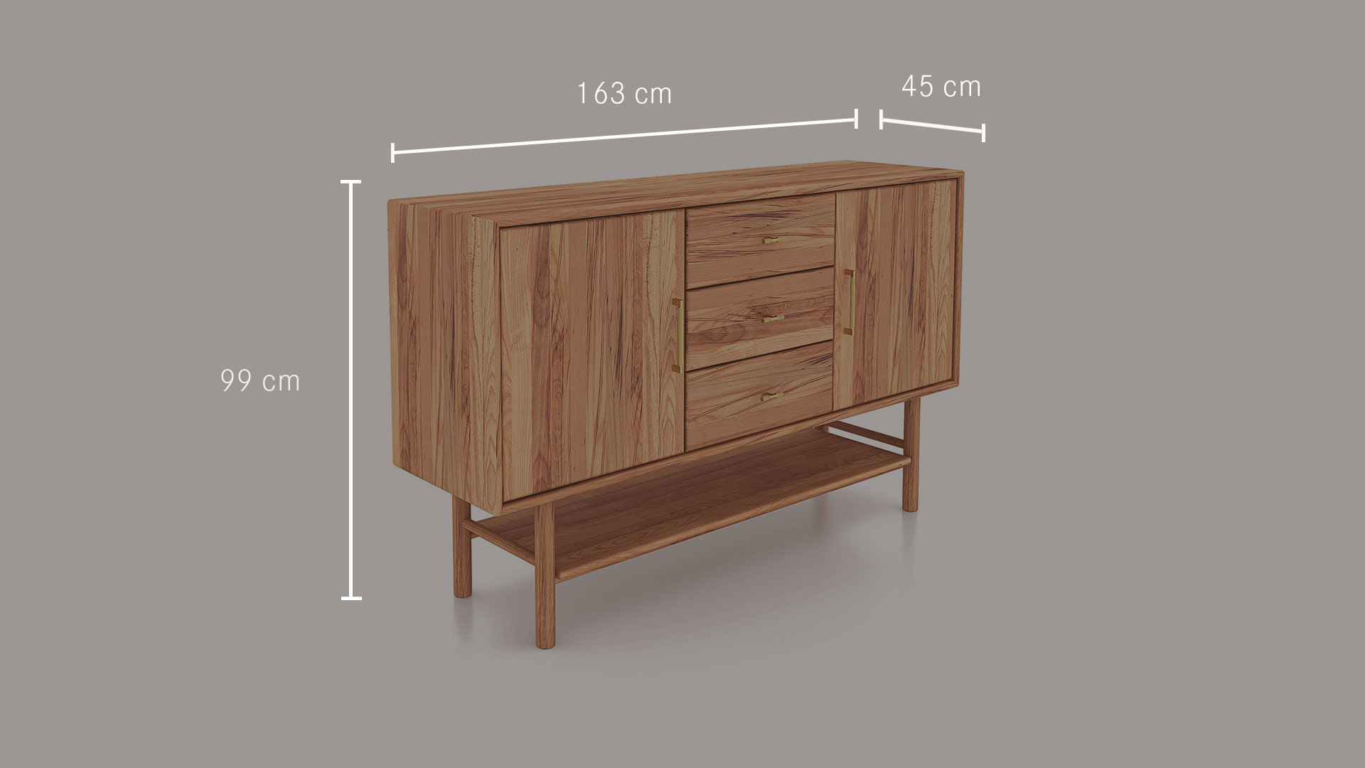 Gefertigt aus massivem, geöltem Holz mit lebendiger Maserung zeigt sich "Serea" je nach Ausführung in warmen Naturtönen oder in einem tiefem Mokka-Farbton. So verbindet das Sideboard natürliche Ausdruckskraft mit Designkultur und wird zum Blickfang in jedem Raum.
