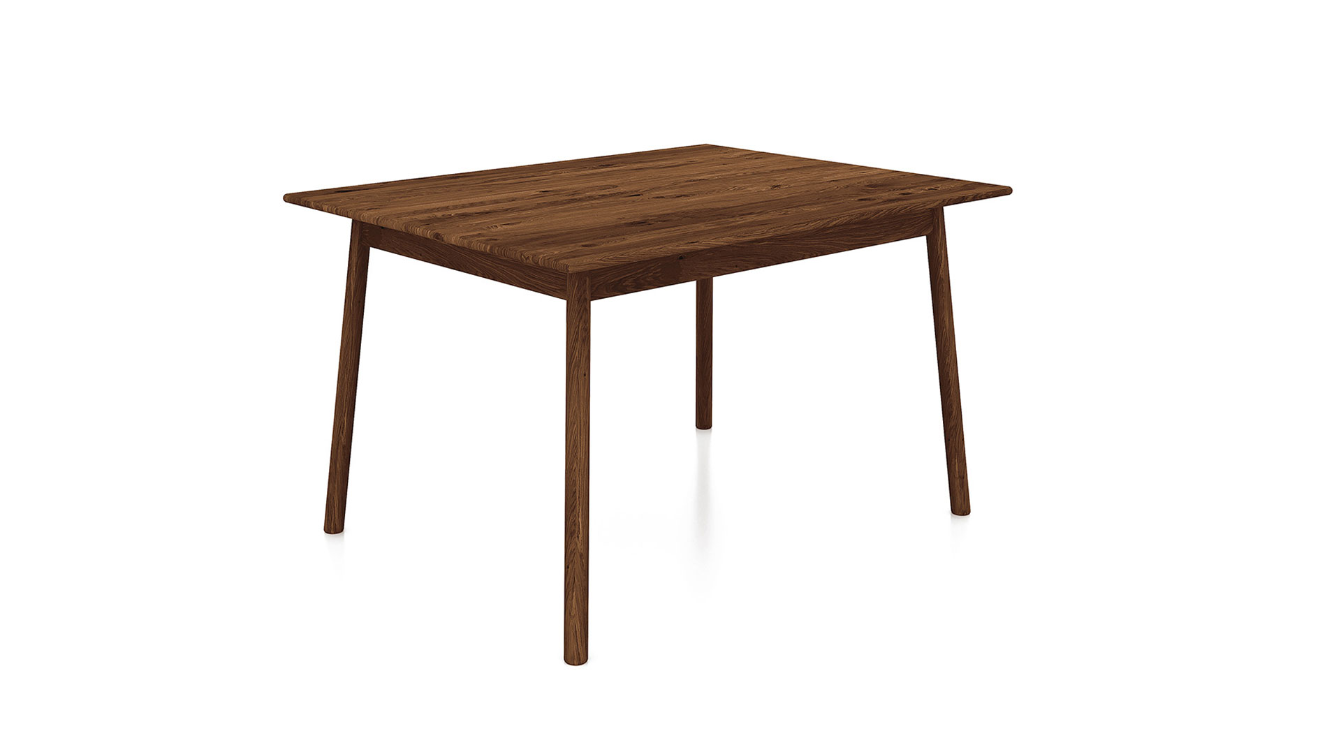 • Runde Tischbeine, leicht schräg nach außen verlaufend und in die Zarge integriert