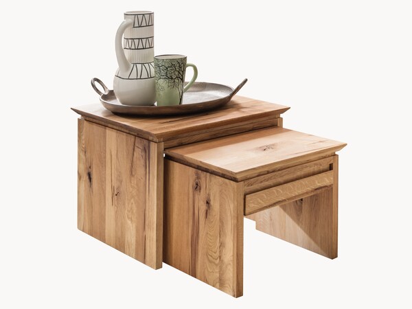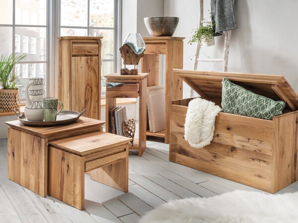 Mit einem Couchtisch aus massivem Eichen- oder Wildeichenholz holen Sie sich ein Stück Natur in Ihr Wohnzimmer. Das lebendige und warme Naturmaterial Holz mit seiner biologischen, geölten Oberflächen-Behandlung zaubert natürlichen Charme in Ihre Räume. Wählen Sie aus verschiedenen faszinierenden Designs Ihren ganz persönlichen Lieblingstisch.
